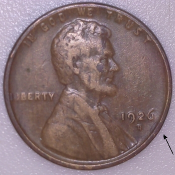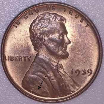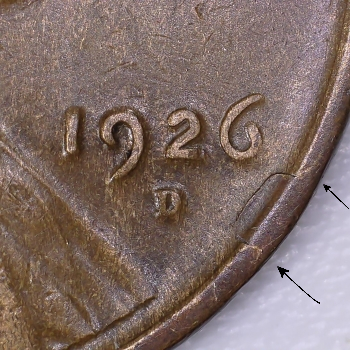 Note: Reverse Die Crack from rim into right wheat stalk.