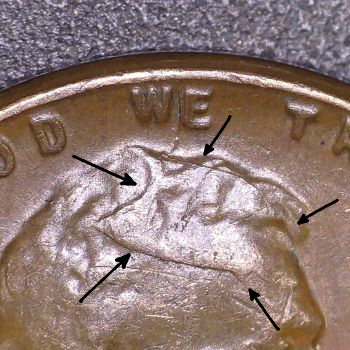Note: Obverse Interior Die Break IDB-1c-1952S-01 “black arrows”, Retained Interior Die Break RIDB-1c-1952S-01 “white arrows” & die chips on date.