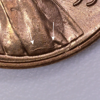 DIE MARKERS: OBVERSE – Multiple Die Cracks on Lincoln’s Coat.