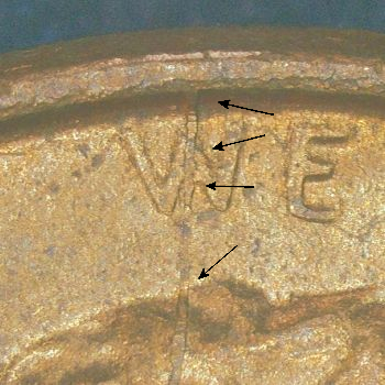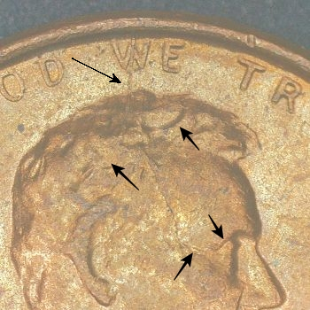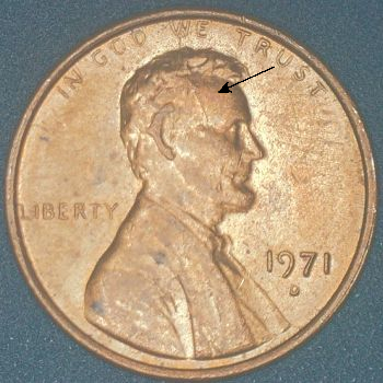 DIE MARKERS: OBVERSE – Die Crack top of skull.
