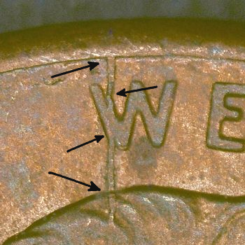 DIE MARKERS: OBVERSE – Die Crack Rim to bottom of Bow Tie.