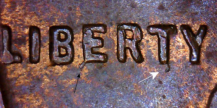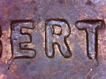 DIE MARKERS: The Die Crack runs from the rim to between the “RT” in LIBERTY.