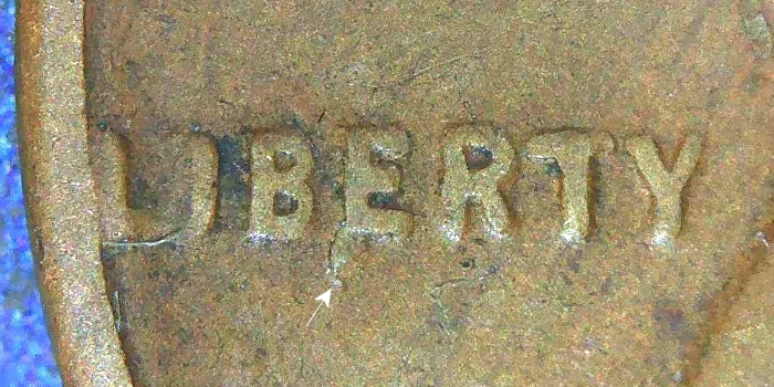 Reverse -Die Chips “T” in “CENT” and Right Wheat.