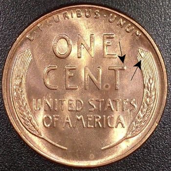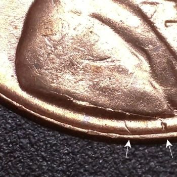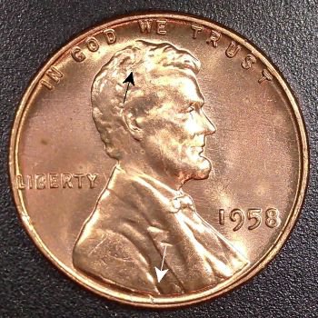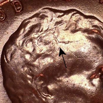 DIE MARKERS: OBVERSE – Die Cracks on Lincoln’s Head “White Arrow”.