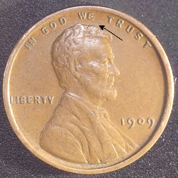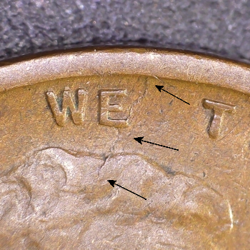DIE MARKERS: OBVERSE – Die Cracks between “D & E” in Motto.