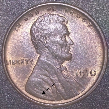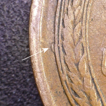 DIE MARKERS: OBVERSE – Die Chips on B & R in LIBERTY “black arrows”