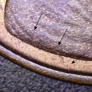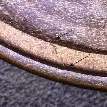 REVERSE – Die Crack rim to left wheat.