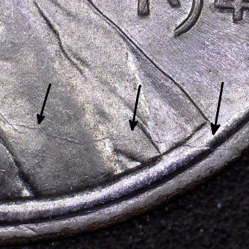 DIE MARKERS: OBVERSE – LIBERTY Die Break “die crack”