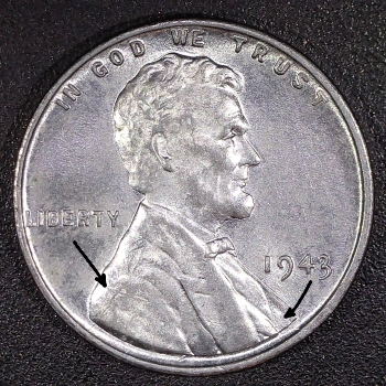 DIE MARKERS: OBVERSE – Die Crack bottom of coat & 1943-D RPM-009