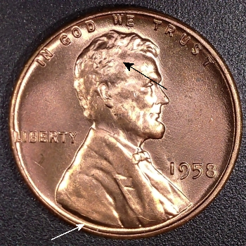 DIE MARKERS: OBVERSE – Multiple Die Cracks on Lincoln’s Coat.