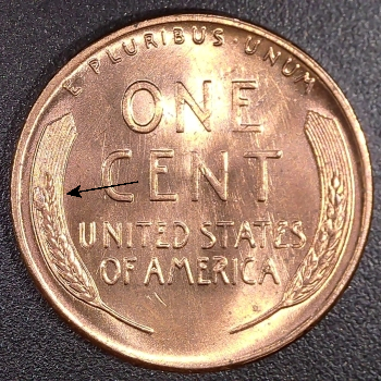 REVERSE – Die Crack rim to “N” in ONE and a Die Crack on right wheat.