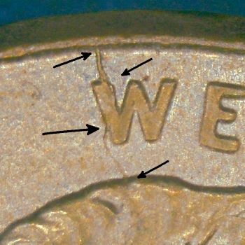 REVERSE – Die Crack rim to “E” in “ONE”.