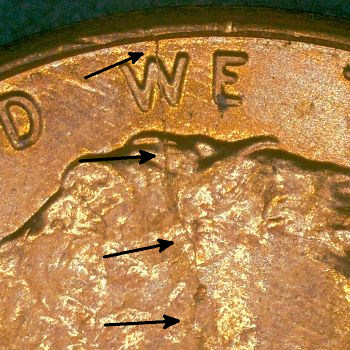 DIE MARKERS: OBVERSE – Die Crack on the head below the “E” in “WE”.