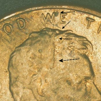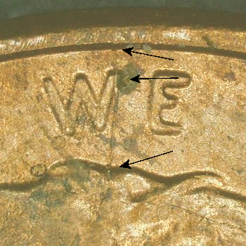 Note: Reverse has 3 die cracks “white arrows”.