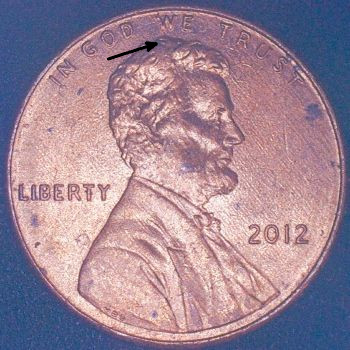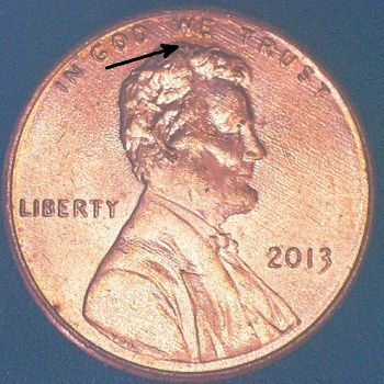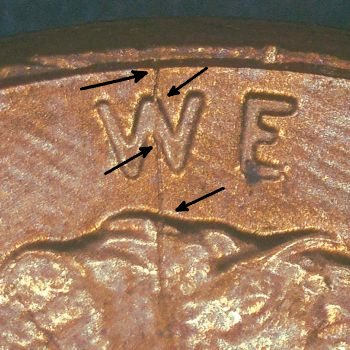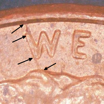 DIE MARKERS: OBVERSE – Die Crack on the head below the “E” in “WE”.