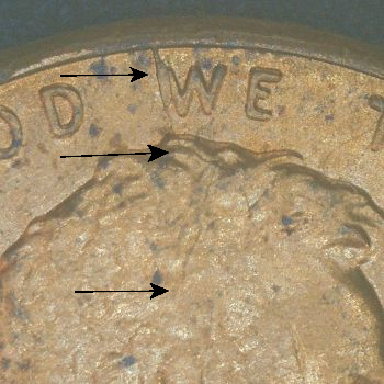 Note: Reverse has 3 die cracks “white arrows”.