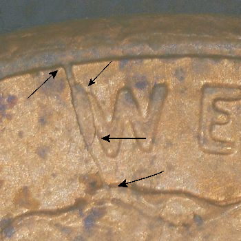 Note: Reverse die crack “black arrow”.