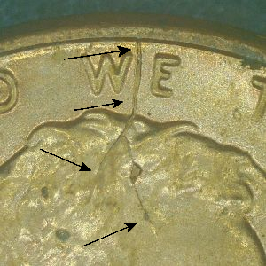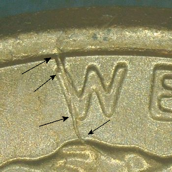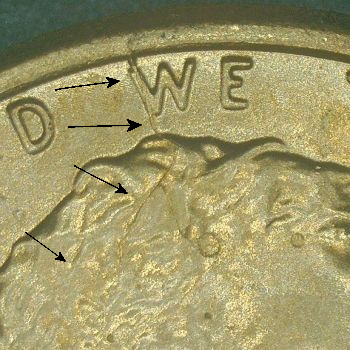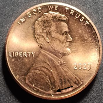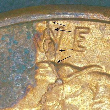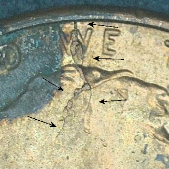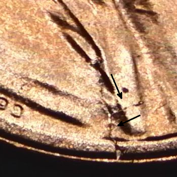 Note: obverse interior die break IDB-1c-2020-01 “black arrows”.