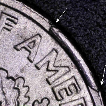 In stage “B” the die cracks in Roosevelt’s hair have radiated from the bottom of the cud have lengthened considerably.